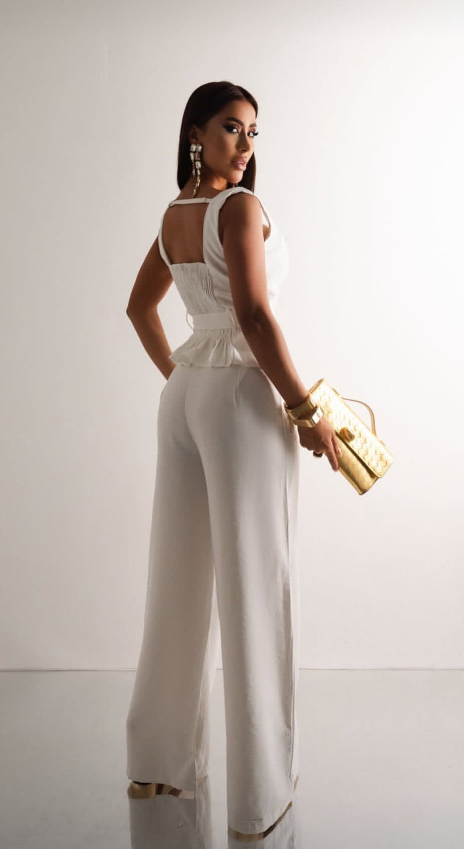 O conjunto resulta em um visual moderno, polido e versátil, perfeito para composições profissionais, encontros especiais ou ocasiões que pedem um toque de sofisticação.